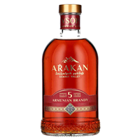 ARAKAN VSOP 5YO BRANDY Arakan to jedna ze świetnych brandy w portfolio Proshyan Brandy Factory. Jej nazwa z ormiańskiego oznacza „Mężczyznę”. Wersja VSOP tworzona jest w regionie Ararat z destylatów komponowanych z odmiany winogron Kangun, które leżakują co najmniej 5 lat w klasycznym dębie. W barwie bursztynowo-złota, na podniebieniu harmonijna, pełna akcentów moreli, wanilii, korzennych przypraw i dębu.