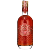 BACOO 7 YEAR AGED RUM odważny i władczy rum, nabierający swojej mocy przez 7 lat. Dojrzałe, tostowe, zachęcające aromaty wiórków bananowych, twardych cukierków karmelowych, suszonej pomarańczy i geraniolu. Smak bardzo złożony, nieco pieprzny, z nutą karmelizowanego owocu gwiaździstego, pieczone orzechy, cedr, grzanka z rodzynkami. Doskonały rum z bogatym charakterem beczki. Idealny do picia soute.