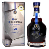 GRAN DUQUE D’ALBA XO Ta wyjątkowa brandy de Jerez Solera Gran Reserva dojrzewa w beczkach po sherry Pedro Ximenez „Don Guido”, liczących sobie ponad 20 lat. Średni okres dojrzewania 18 lat rozwija w tym trunku niezwykle intensywne nuty wanilii, rodzynek, suszonych śliwek i daktyli. Doskonały balans pomiędzy goryczką płynącą z migdałów i orzechów z jednoczesnym posmakiem kandyzowanych pomarańczy. Przyjemnie długi, słodki i korzenny finisz.