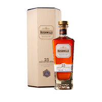 Bushmills 25 Year Old to wyjątkowa single malt whiskey, potrójnie destylowana z 100% słodowanego jęczmienia. Dojrzewa przez cztery do sześciu lat w beczkach po sherry Oloroso i bourbonie, a następnie przez 21 lat w pierwszej napełnionych beczkach portowych.
