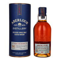 Aberlour 14YO, wyjątkowy single malt, produkowany w pojedynczych partiach. Do jego produkcji użyto najlepszych, specjalnie wyselekcjonowanych beczek po sherry Oloroso oraz większej proporcji beczek z amerykańskiego dębu dla głębszego, bogatszego i bardziej kremowego smaku. Dzięki najwyższej jakości jęczmień oraz krystalicznie czystej wodzie ze źródła Birkenbush uzyskujemy destylat o wyjątkowych charakterze z unikalnymi nutami czarnej porzeczki. W uznaniu jakości, Aberlour 14YO otrzymał podwójny złoty medal podczas prestiżowego konkursu International Wine & Spirits Competition 2020 oraz złoty medal podczas International Spirits Challenge 2020