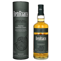 Benriach Peated Quarter Cask 46% to wyjątkowa whisky single malt, która wyróżnia się połączeniem owocowych i ziołowych nut z wyraźnym torfowym tłem, charakterystycznym dla destylarni Benriach. Whisky dojrzewała w mniejszych beczkach typu „quarter cask”, co przyspieszyło proces maturacji i pozwoliło na intensywniejszą wymianę smaku z drewnem. Dodatkowo, nie była poddawana filtracji na zimno, co zachowało pełnię jej naturalnego charakteru.