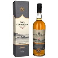 FINLAGGAN EILEAN MOR Kolejny poziom wtajemniczenia w świat whisky torfowych. Nazwa edycji odnosi się do nazwy wyspy na której znajdują się ruiny zamku Finlaggan nad jeziorem Finlaggan. Whisky komponowana w małych partiach ok. 20 beczek na partię. Niefiltrowana na zimno, niebarwiona karmelem. W aromacie słodki dym torfowy, nuty medyczne i słoność. Smak pełny dzięki wyższej zawartości alkoholu oraz braku procesu filtracji na zimno. Oleista, słodko przyprawowa. Finisz długi, kończący się dymem żarzącego się ogniska.