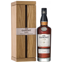 The Glenlivet XXV mieści się w klasie ultra premium zarówno pod względem smaku, jak i opakowania. Wyselekcjonowane roczniki vintage finiszują w beczkach po sherry z pierwszego nalewu, które nadają tej prestiżowej whisky bogaty i pełny profil. Każda partia jest numerowana, a każda butelka opakowana w piękną dębową skrzynkę.