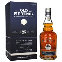 Whisky SM Old Pulteney 25YO to wyrafinowany single malt, który przez ćwierć wieku dojrzewał w beczkach po bourbonie i sherry, oferując intensywne doznania smakowe i aromatyczne.