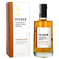 YUSHAN SIGNATURE BOURBON CASK Tajwańska whisky destylowana w miedzianych kotłach destylacyjnych pochodzących ze Szkocji i Belgii. W nosie słodka i zrównoważona, pełna owoców cytrusowych i kwiatów. Na podniebieniu intensywne nuty dymne z karmelizowanym brązowym cukrem.