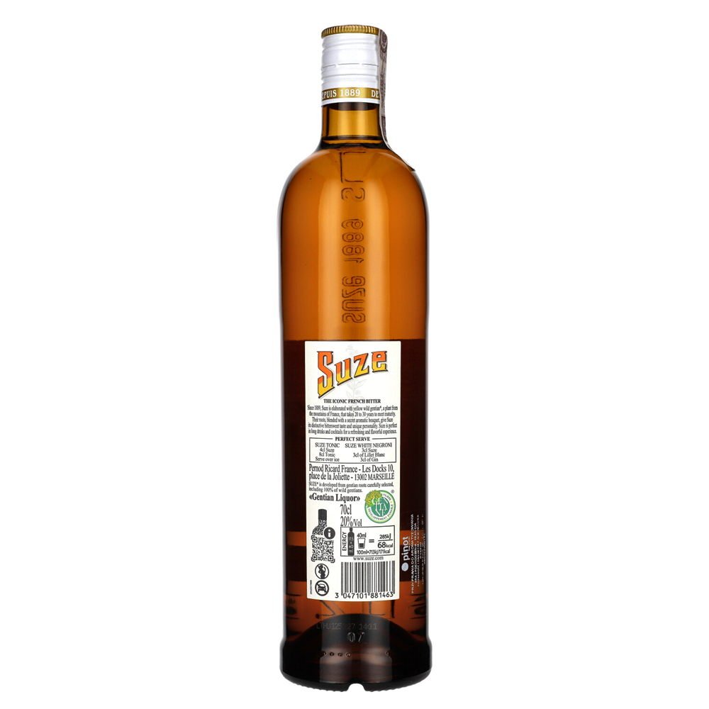 Suze to kultowy francuski gorzki likier, inspirowany naturą i tradycją alpejskich regionów. Wyróżnia się intensywną, jasnożółtą barwą oraz wyrazistym, botanicznym charakterem.