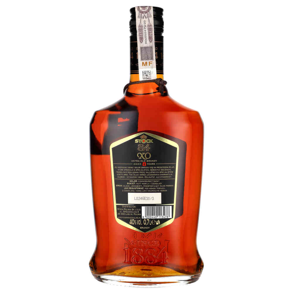 Brandy Stock XO łączy w sobie subtelną delikatność orzechów, wyrafinowane nuty kakao oraz bogate akcenty dębiny i owoców. Ten luksusowy trunek powstaje z gron Ugni Blanc, destylowanych w renomowanych włoskich winnicach i leżakujących co najmniej osiem lat. Efektem jest jedyny w swoim rodzaju, łagodny smak z nutami owoców takich jak pomarańcze, banany, morele i gruszki, wzbogacony karmelową i waniliową harmonią oraz wyrafinowanymi akcentami migdałowego croissanta, goździków, kardamonu i dębu.