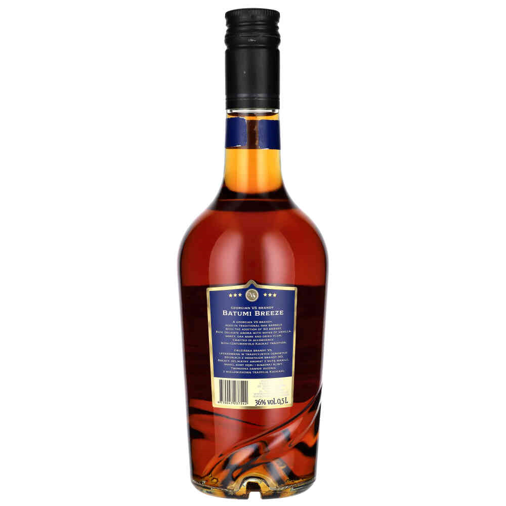 BATUMI BREEZE 6Y Produkcja gruzińskiej brandy Batumi Breeze opiera się na starożytnych tradycjach, których przekazywanie z pokolenia na pokolenie zapewnia zachowanie dziedzictwa gruzińskiego winiarstwa i wytwarzania brandy. Batumi Breeze to brandy pochodząca z doliny Alazani, znanej ze wspaniałych tradycji winiarskich i najwyższej jakości gron gruzińskich szczepów. Endemiczne odmiany winorośli, tradycyjne procesy produkcji i co najmniej sześcioletnie leżakowanie (w dębowych beczkach) nadaje trunkowi szlachetny bursztynowy kolor ze złotymi refleksami. Batumi Breeze brandy jest zwiewna, słodka i lekko orientalnie pikantna jak morska bryza znad portu w Batumi. To doskonała kompozycja destylatów, pachnąca prażonymi orzechami. W smaku pełna, z wyczuwalnymi bogatymi nutami winogron.