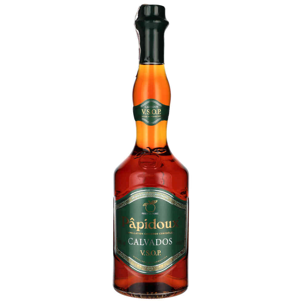 PAPIDOUX VSOP Ten calvados swój piękny, ciemnozłoty kolor i bogaty, złożony aromat zdobywa podczas 5 letniego procesu dojrzewania w drewnianych beczkach. Niezwykle aromatyczny z intensywnymi nutami suszonych owoców, francuskich dojrzałych jabłek, miodu oraz dębowych liści. Przyjemnie długi finisz doskonale rozgrzeje w chłodne, zimowe wieczory.