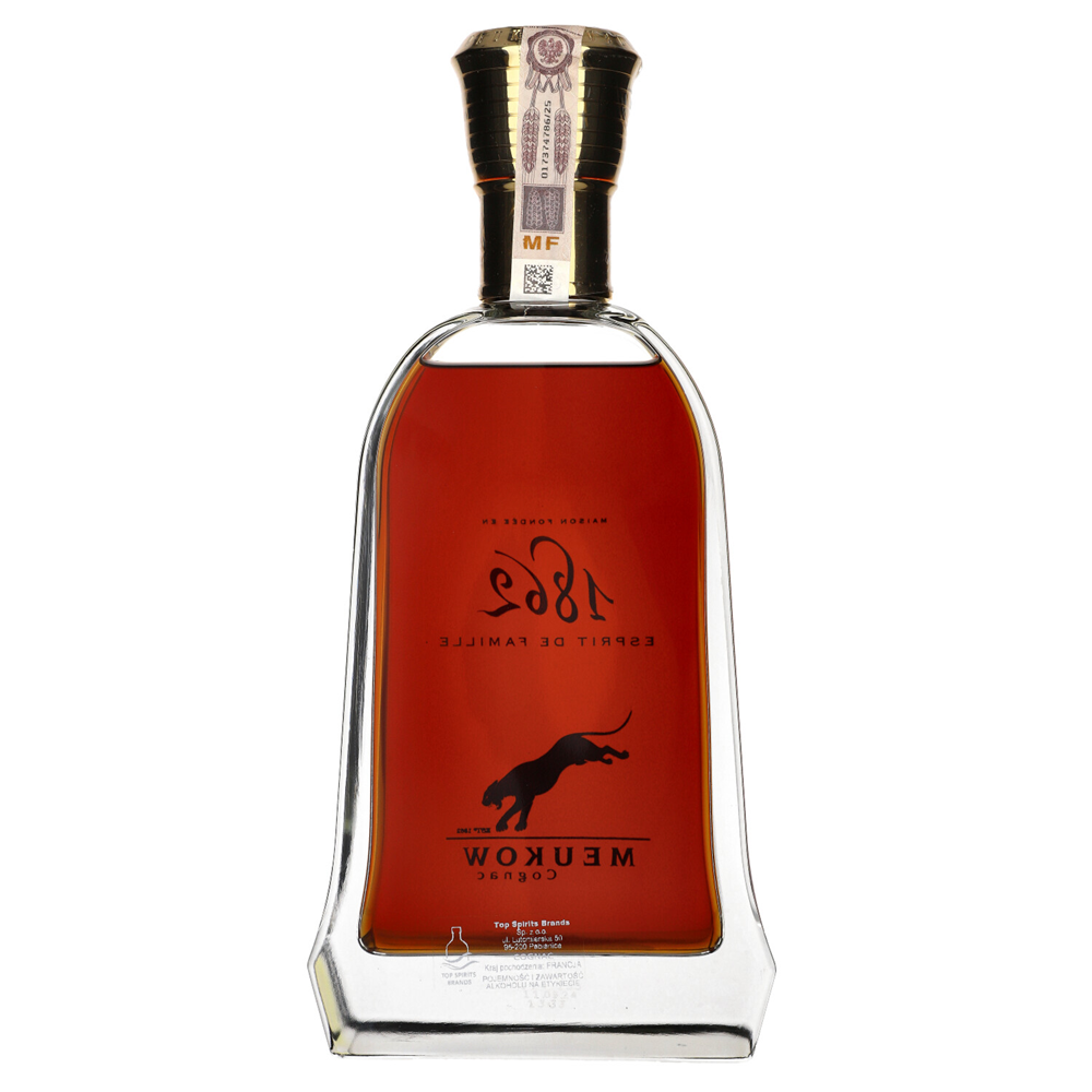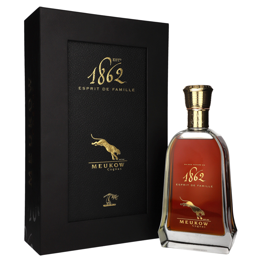 COGNAC MEUKOW L’ESPRIT DE FAMILLE to ultra-premium koniak od Meukow & Co., stworzony jako hołd dla rodzinnej tradycji domu założonego w 1862 roku. To prestiżowy blend najstarszych eaux-de-vie z regionów Grande Champagne i Petite Champagne, dojrzewających przez dekady w beczkach z dębu Limousin.