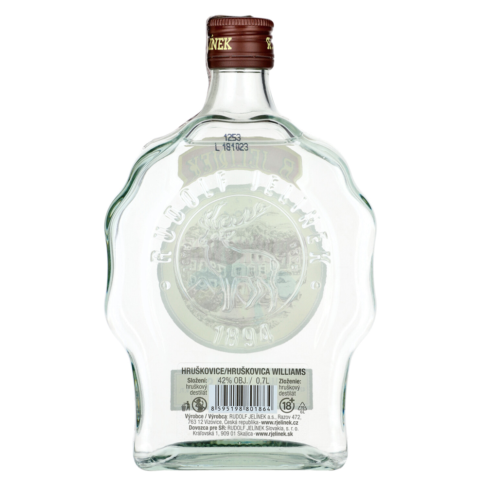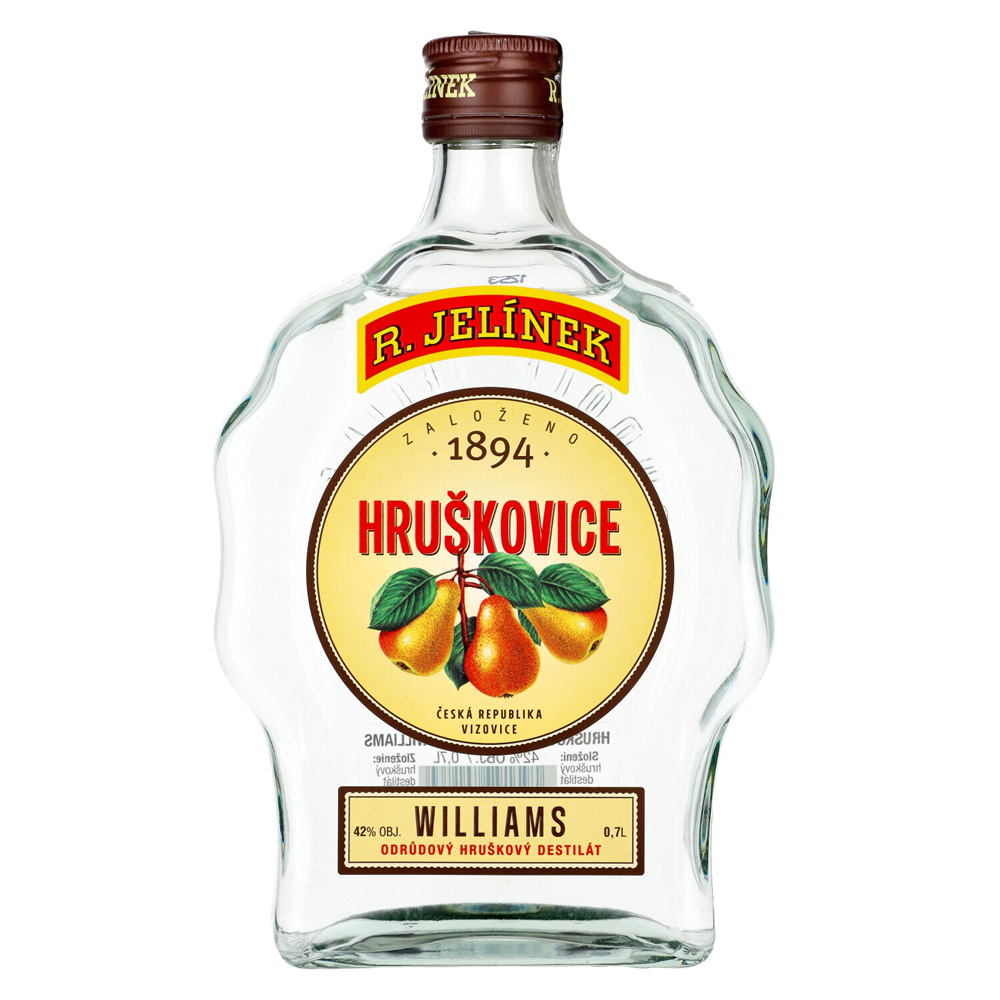 JELINEK GRUSZKOWICA WILLIAMS Gruszkowica Williams to owocowy destylat, powstający ze starej odmiany gruszy ‘Bonkreta Willliamsa’. Charakteryzuje się delikatnym, owocowym smakiem i aromatycznym zapachem dojrzałych gruszek. Gruszkówka poddawana jest 3 stopniowej destylacji i późniejszemu procesowi dojrzewania, który przyczynia się do zharmonizowania zapachu i smaku oraz zaokrąglenia destylatu.