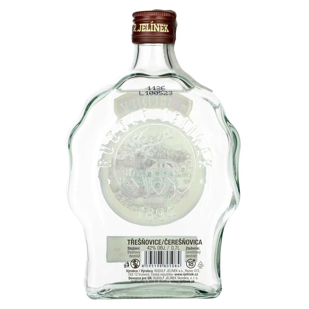 Jelínek Czereśniówica Tresnovice 42% to czeski destylat wiśniowy, produkowany przez renomowaną firmę Rudolf Jelínek. Charakteryzuje się intensywnym smakiem dojrzałych czereśni i wyraźnym aromatem owocowym.
