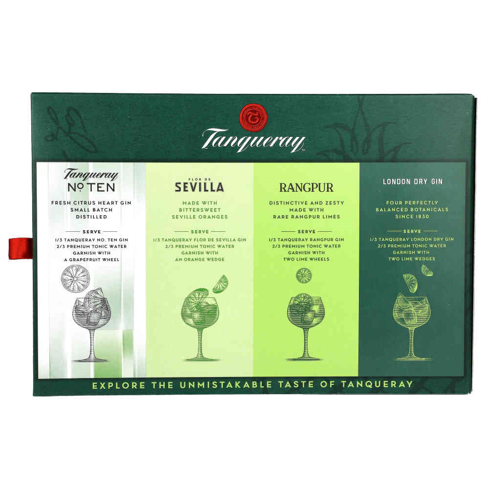 różnych wariantów Tanqueray. Zestaw ten obejmuje klasyczny London Dry