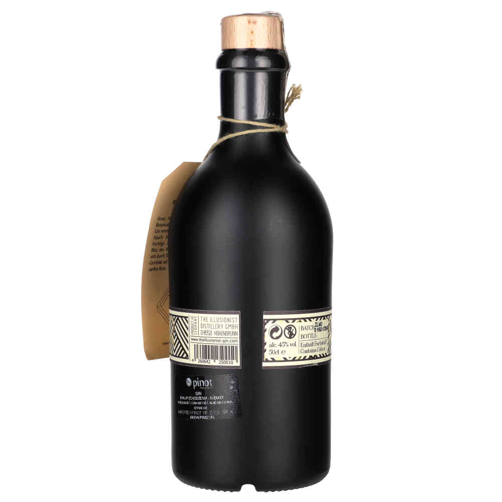 The Illusionist Dry Gin łączy wpływy z całego świata i zadziwia nie tylko smakiem. Destylat ziemisto-ciepłych łupin gałki muszkatołowej, cytrusów, lukrecji, lawendy i kardamonu to fuzja smaków i doznań. Jasno niebieski w kolorze, po zmieszaniu z tonikiem, zmienia kolor na różowy. Ta zaskakująca sztuczka to znak rozpoznawczy, unikat na skalę światową wśród ginów.