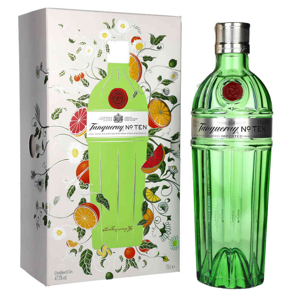 W 2000 roku światło dzienne ujrzała najnowsza edycja tradycyjnego ginu Tanqueray. Osobą odpowiedzialną za jego powstanie był Master Distiller Tom Nichol. Swoją nazwę czerpie od przydomku jaki przylgnął do małego miedzianego alembiku „Tiny Ten”, który bierze udział w procesie jego powstawania. Ważną jego cechą jest zastosowanie przy produkcji dużej ilości owoców cytrusowych które nadają dużej lekkości całej kompozycji.