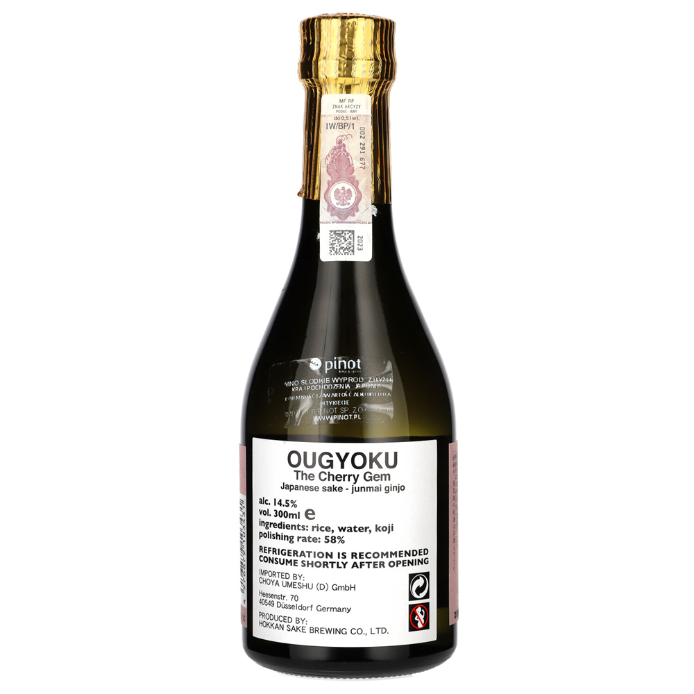 JUNMAI GINJO OUGYOKU Wysokiej jakości sake pełne owocowej głębi, o świeżym i czystym smaku. W nosie aromatyczne nuty melona. Doskonale pasuje do sushi i innych dań na bazie morskich ryb. Najlepiej serwować schłodzone w temperaturze 5-10 stopni.