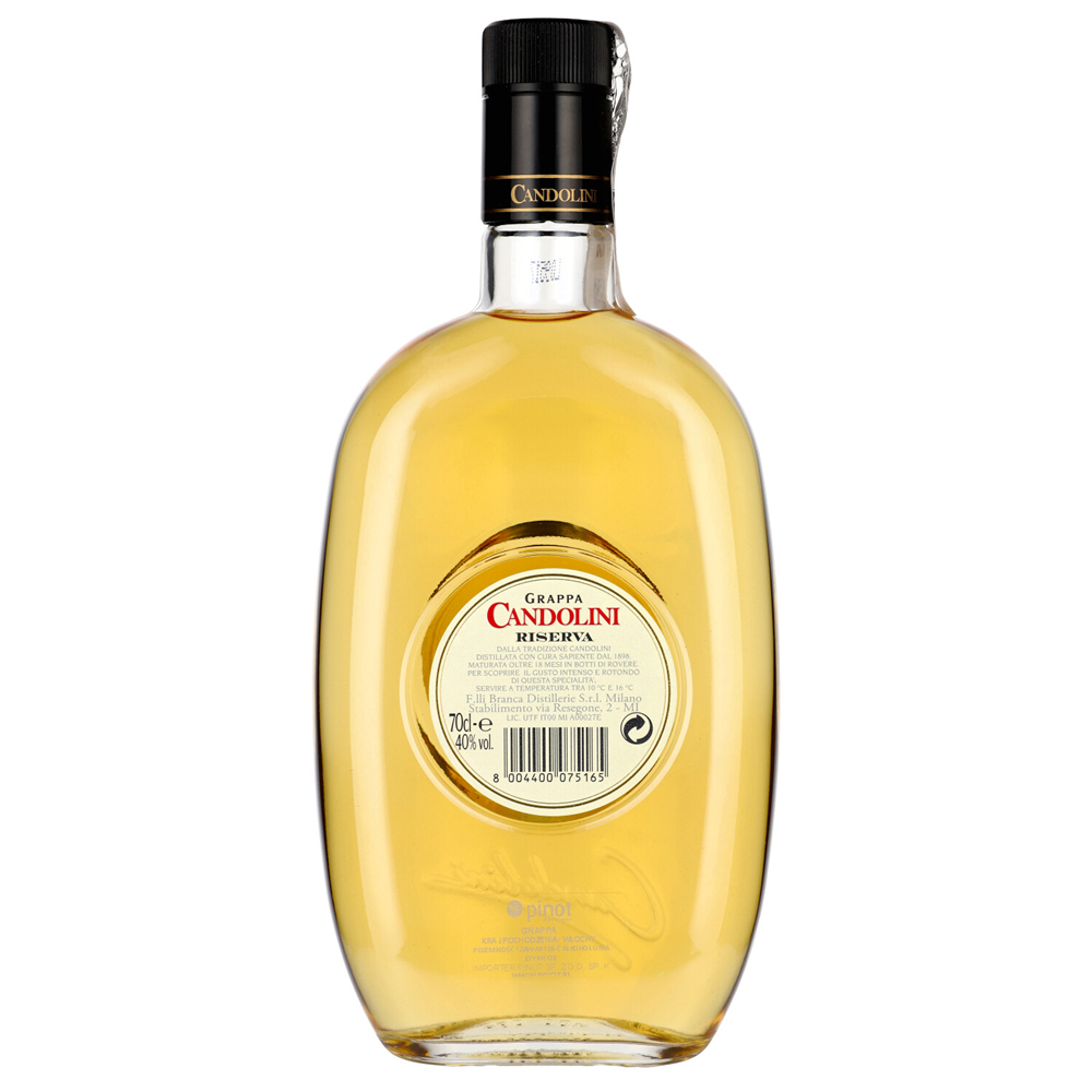 Grappa Candolini Riserva to wyjątkowy, włoski alkohol produkowany przez Fratelli Branca Distillerie. Jest ceniona za swój gładki i elegancki profil smakowy, szczególnie wśród koneserów grappy. Ta wersja dojrzewa przez ponad 18 miesięcy w dębowych beczkach, co nadaje jej bogaty, bursztynowy kolor i wyrafinowany, dojrzały smak. Proces starzenia dodaje głębi i złożoności, dzięki czemu trunek ma zbalansowany, ale intensywny smak, idealny jako digestif po posiłku, dla osób preferujących mocniejsze, bardziej rozwinięte aromaty.