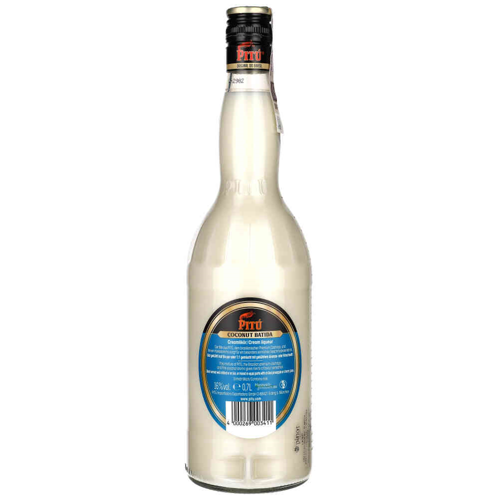 Likier Pitú Coconut Batida to brazylijski napój alkoholowy o zawartości alkoholu 16%, będący połączeniem cachaçy i mleka kokosowego. Jego smak jest kremowy, słodki i intensywnie kokosowy, z długotrwałym, tropikalnym wykończeniem. Pitú Coconut Batida jest często spożywany schłodzony, solo lub na lodzie, ale doskonale sprawdza się również jako baza do koktajli, szczególnie dobrze komponuje się z sokiem ananasowym lub innymi owocowymi dodatkami.