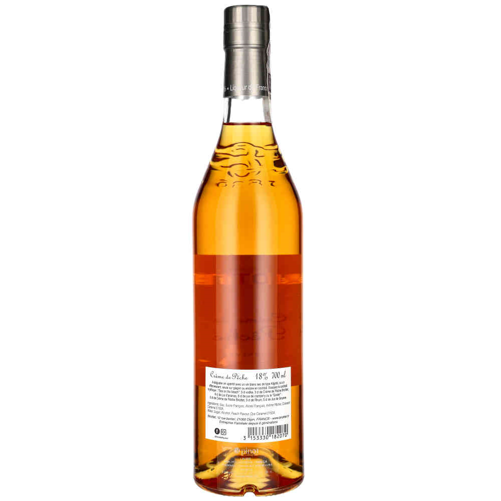 Briottet Crème de Pêche 18% 0.7L to francuski likier o bogatym, owocowym smaku. Produkowany z dojrzałych brzoskwiń winnic, oferuje intensywny aromat i jedwabistą konsystencję. Jego złocisty kolor i delikatna słodycz czynią go doskonałym do picia solo lub jako dodatek do koktajli.