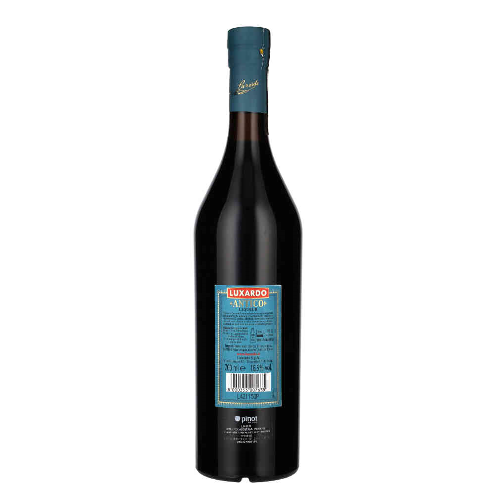 Luxardo Antico to likier na bazie wiśni maraska, dojrzewający w dębowych kadziach i wzbogacony mieszanką ziół i przypraw. Butelkowany z zawartością alkoholu 16,5%, doskonale sprawdzi się jako zamiennik wermutu w koktajlach, a także na czysto lub z lodem jako aperitif.