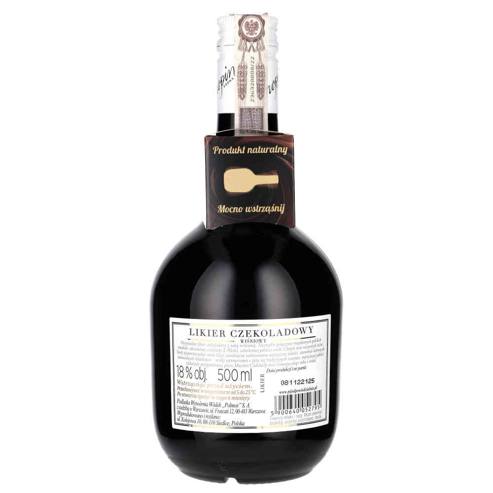 wiśnie oraz szlachetną wódkę Chopin, wytwarzaną z żyta według tradycyjnych
