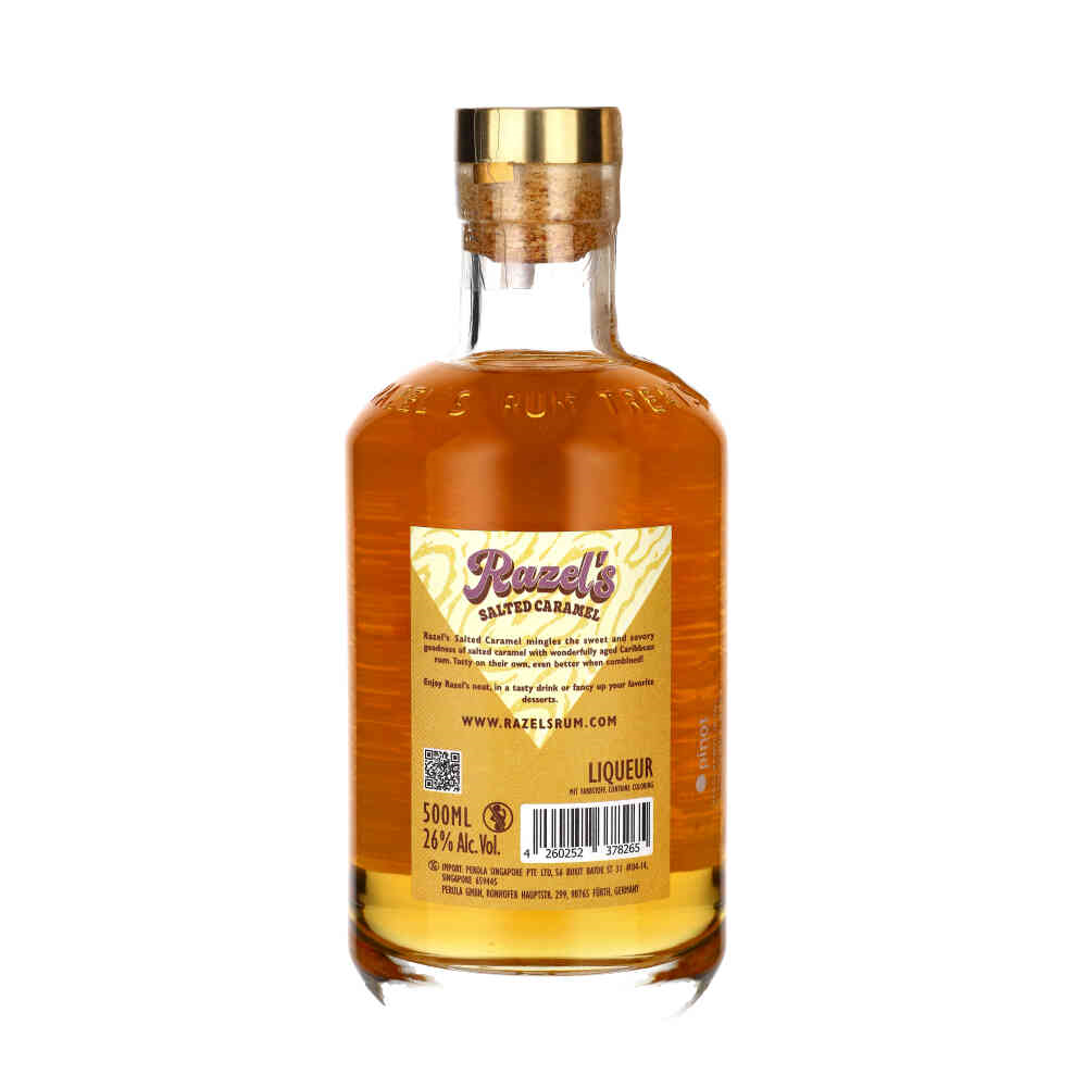 RAZEL'S SALTED CARAMEL LIQUEUR to wyjątkowe połączenie karaibskiego rumu, solonego karmelu i prawdziwej wanilii z Madagaskaru. Przy zawartości alkoholu 26% jest łagodny, a jednocześnie pełen głębokiego smaku.