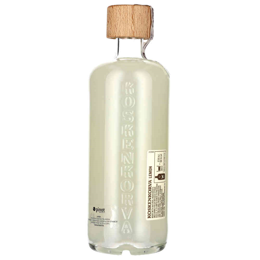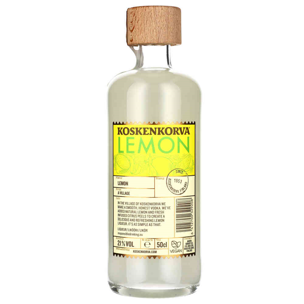 Koskenkorva Lemon to pyszna i orzeźwiająca cytrynowa kompozycja zrobiona z wódki Koskenkorva, naturalnej cytryny i świeżych skórek cytrusowych. Ma świeży powiew prawdziwych cytryn i jest mniej słodki niż inne likiery cytrynowe.