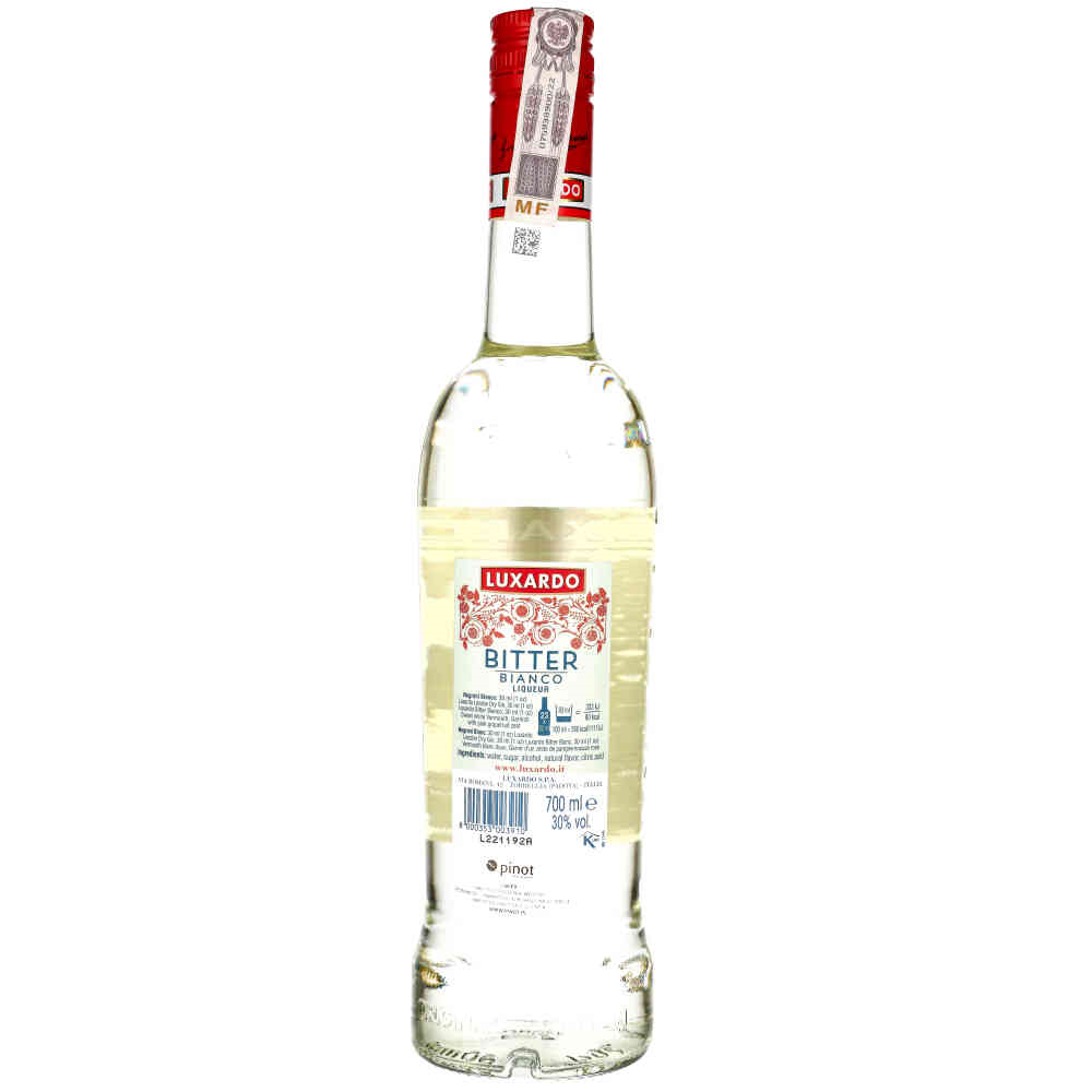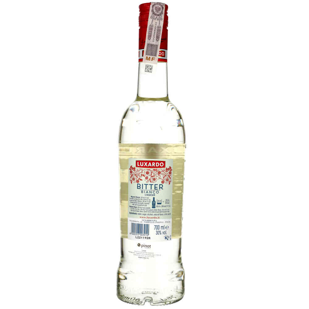 Likier Luxardo Bitter Bianco to wyjątkowy włoski likier o zawartości alkoholu 30%. Charakteryzuje się wyrafinowaną mieszanką ziół i przypraw, które nadają mu złożony, ale harmonijny smak. Luxardo Bitter Bianco wyróżnia się swoim jasnym, przejrzystym kolorem oraz unikalnym profilem smakowym, w którym wyczuwalne są gorzkie i ziołowe nuty z delikatnym akcentem cytrusowym.
