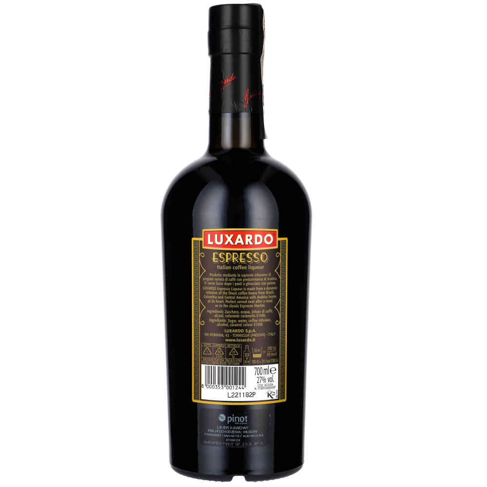 Zastosowanie: Luxardo Espresso najlepiej smakuje podawany na zimno lub z lodem. Jego wyrazisty smak sprawia, że jest doskonały zarówno do samodzielnego spożycia, jak i jako składnik różnorodnych koktajli.