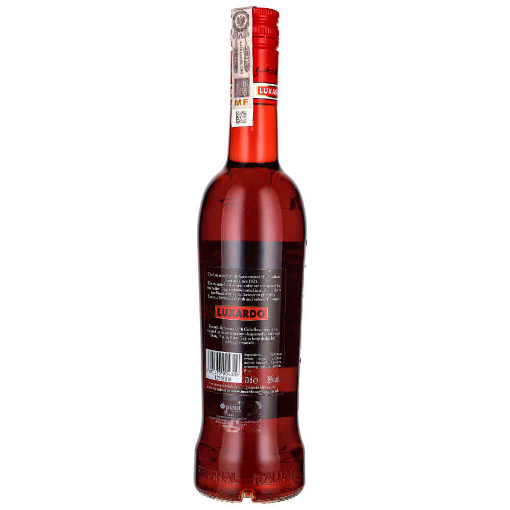 Likier Luxardo Sambuca Cola to unikalna sambuca łącząca klasyczny smak anyżu z nutami coli. Zawierający 38% alkoholu likier oferuje orzeźwiające połączenie słodyczy sambuki z karmelowymi i gazowanymi akcentami coli.