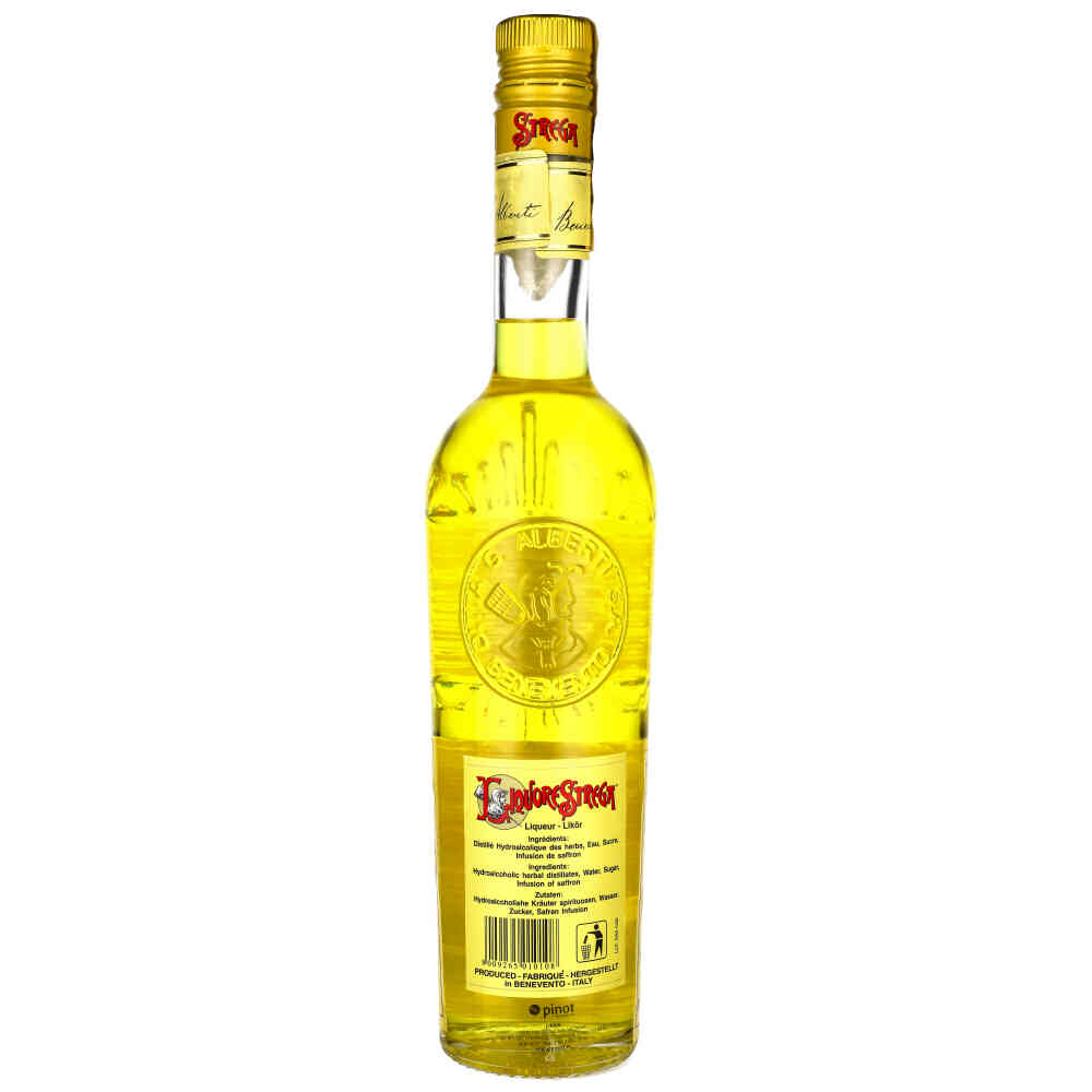 STREGA LIQUORE Wyjątkowy i niepowtarzalny w swoim smaku, dzięki wykorzystaniu wyłącznie naturalnych składników. Proces produkcji rozpoczyna się od zmielenia około 70 różnych ziół i przypraw, charakteryzujących się szczególnymi właściwościami aromatycznymi. Wśród nich znajdują się m.in. laski cynamonu z Cejlonu, jagody jałowca z Apeninów i lokalna mięta. Piękna złota barwa pochodzi od dodatku drogocennego szafranu. Podniebienie wypełnione bogatymi ziołowymi nutami z anyżem, kardamonem i ziarnami kakao.