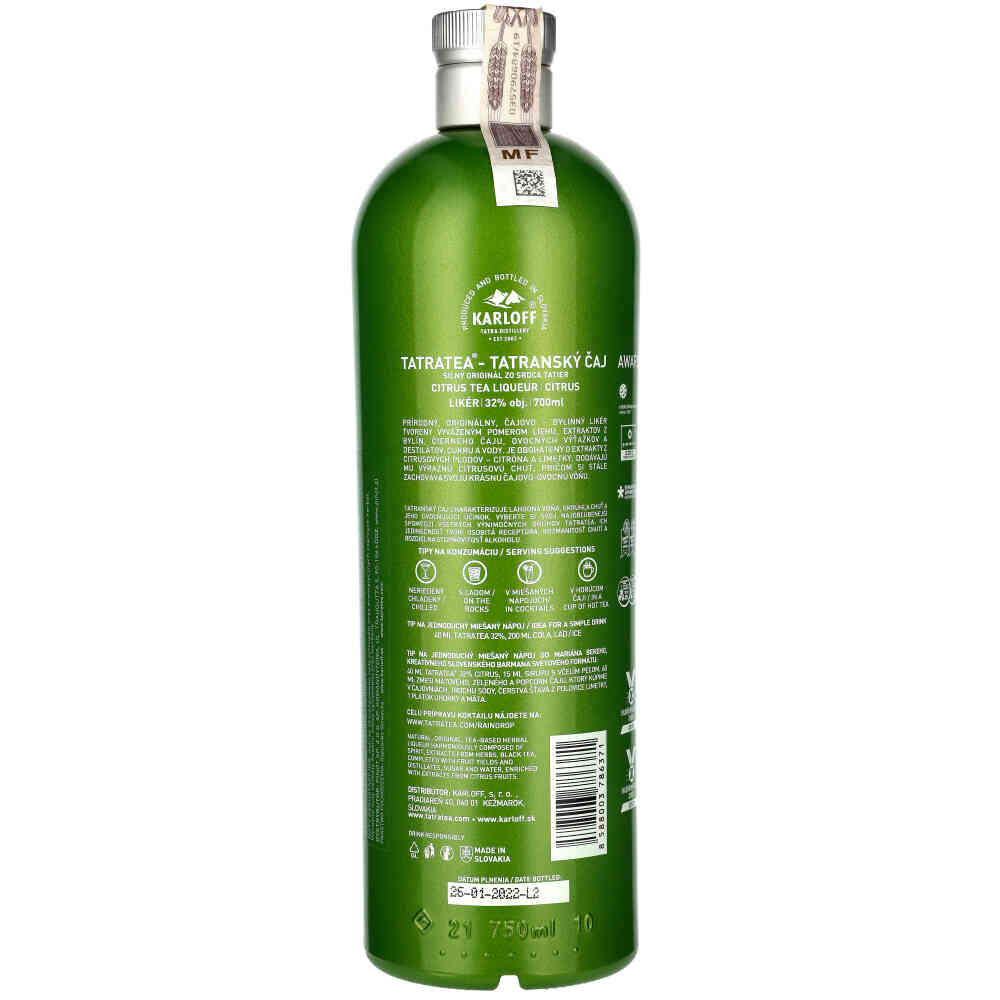 TATRATEA CITRUS TEA LIQUEUR Podstawą odświeżająco cierpkiego i owocowego smaku herbaty są cytryny i limonki.