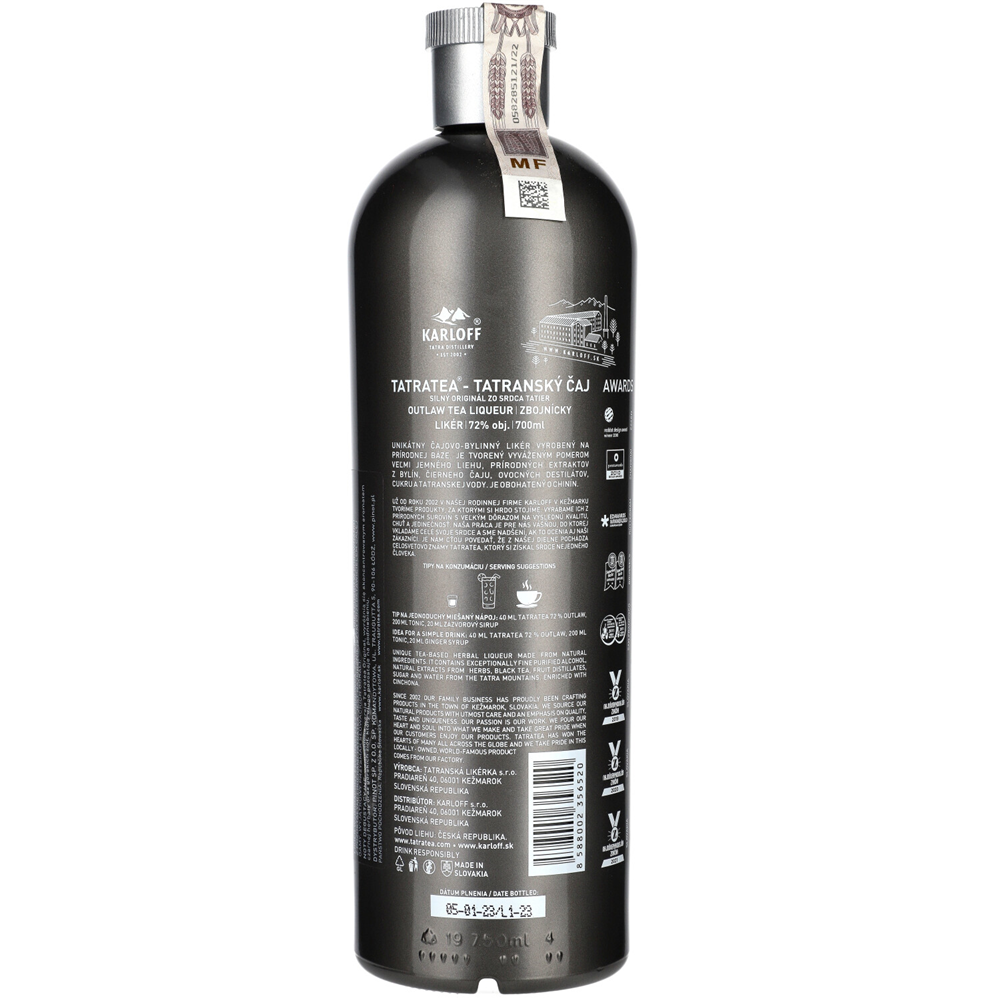 TATRATEA OUTLAW TEA LIQUEUR Silny posmak ziół alpejskich uzyskany dzięki wysokiej zawartości alkoholu.