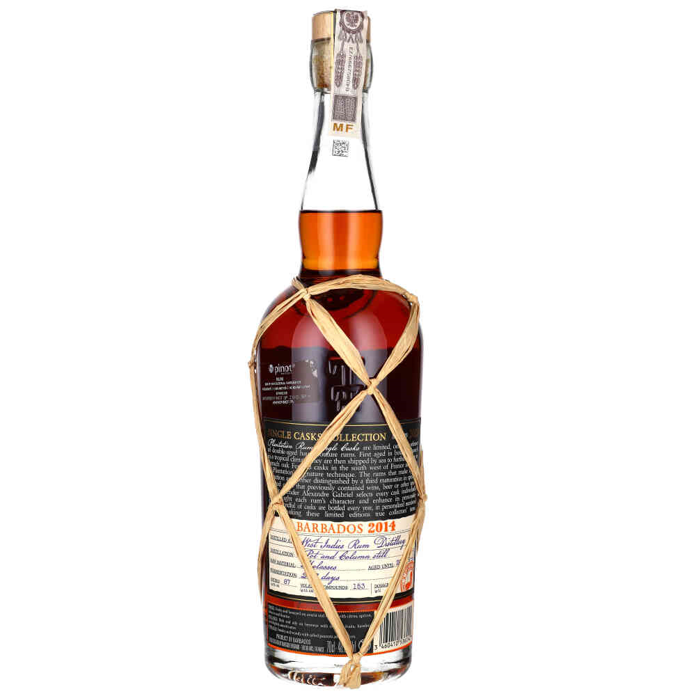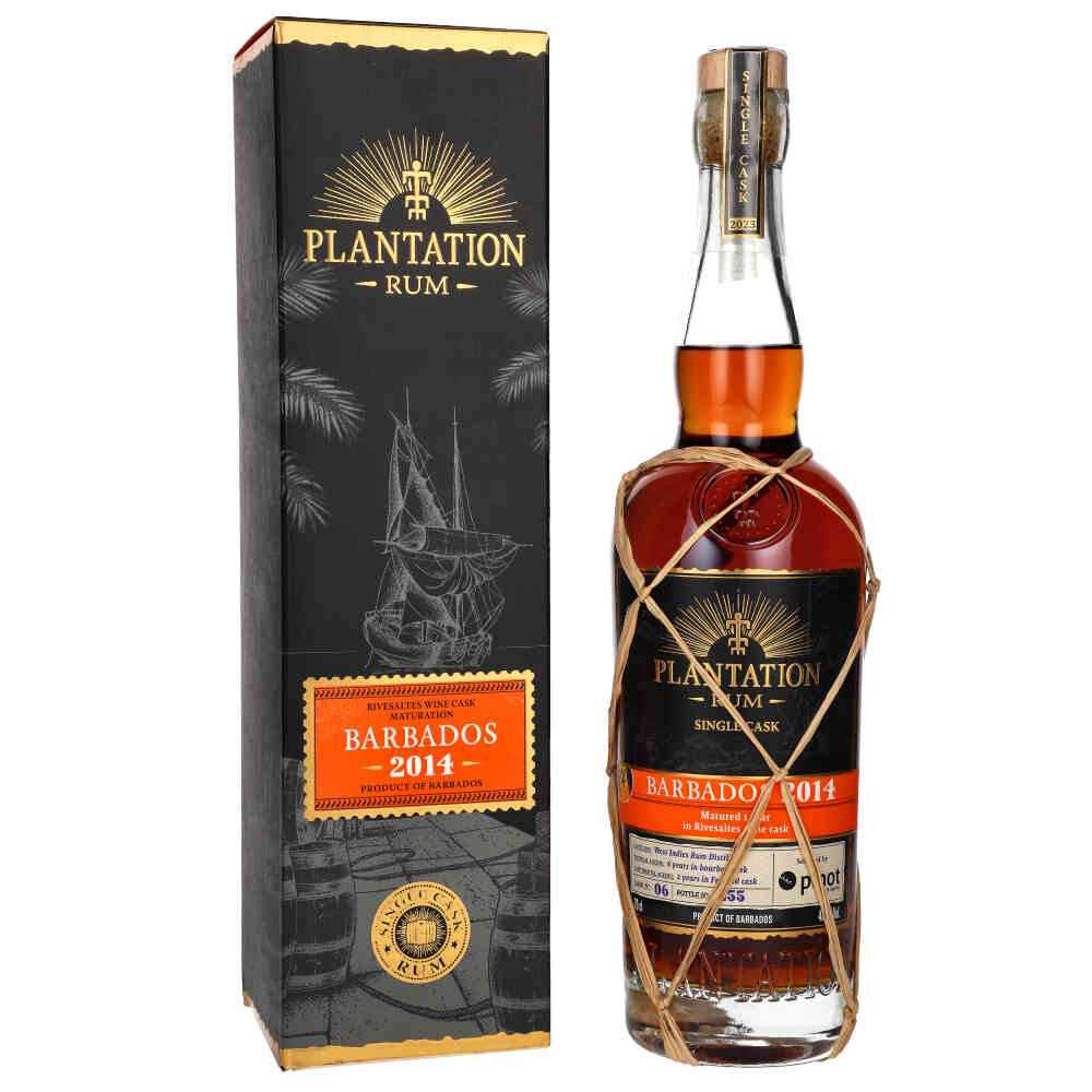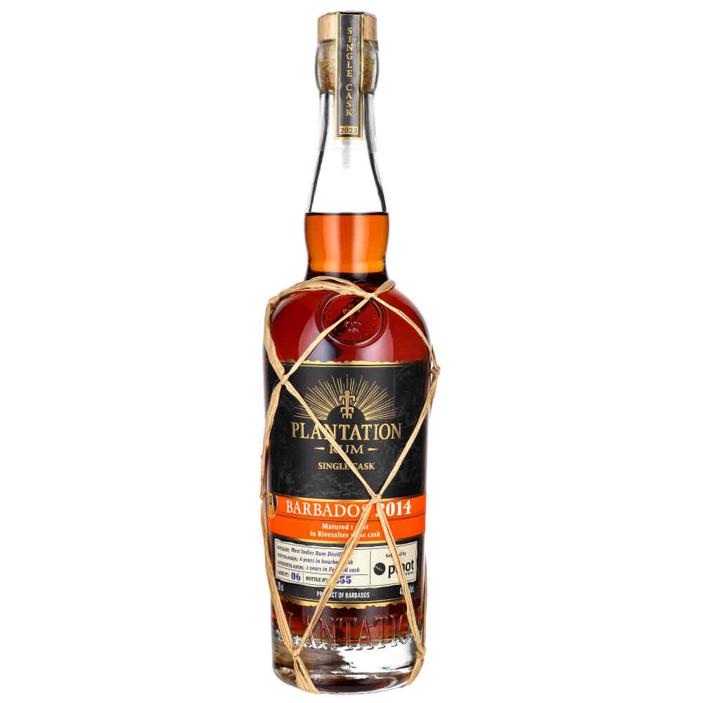 Plantation Single Cask Barbados 2014 to rum klasy premium, który oferuje wyjątkową kombinację starzenia w tropikalnych i kontynentalnych warunkach. Początkowo destylowany w West Indies Rum Distillery w 2014 roku, rum ten powstaje z melasy, a do jego produkcji używa się zarówno alembiku, jak i kolumny destylacyjnej. Przechodzi podwójny proces starzenia: 6 lat w tropikalnym klimacie w beczkach po bourbonie, a następnie 2 lata w kontynentalnym klimacie w beczkach po koniaku Ferrand. Na koniec dojrzewa przez rok w beczkach po winie Rivesaltes, co nadaje mu złożony i bogaty profil smakowy.