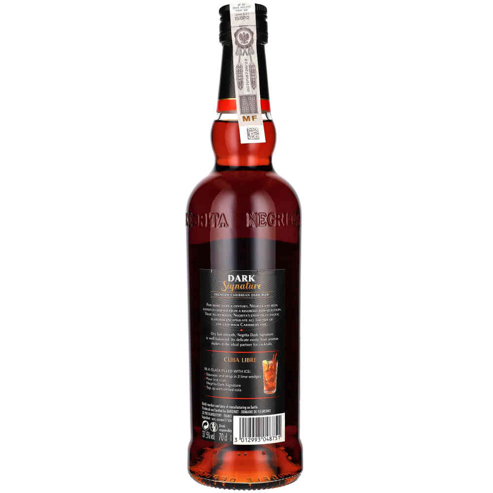 RHUM NEGRITA BLACK - Ten ciemny rum to połączenie wyrazistych, pełnych i bogatych w smaku destylatów z morza karaibskiego. Mariaż ten oddaje pełnie egzotycznych smaków i aromatów przy zachowaniu krągłego i delikatnie słodkawego posmaku. Finisz ujawnia delikatnie dębowe tony sprawiając że rum ten idealnie nadaje się do klasycznych cocktaili jak i do picia w czystej postaci.