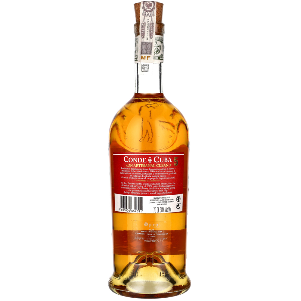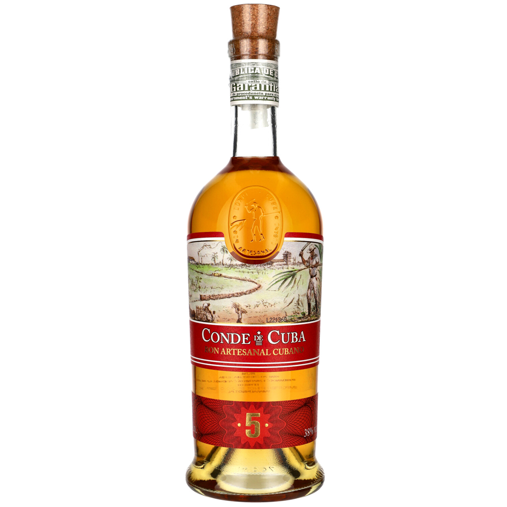 CONDE DE CUBA 5 YEARS Wyjątkowa pozycja o unikalnym i dość złożonym systemie dojrzewania, z wykorzystaniem dużej liczby beczek i frakcyjnego blendowania. Wspomniany system nazywa się Solera i jest używany do produkcji wszystkich rodzajów kubańskich rumów. Złocisty trunek oferuje aromaty wanilii z akordami skórki pomarańczy. W zapachu akcenty kwiatowe i nuty wędzonego dębu. Ekspresja idealnie nadaje się do konsumpcji ulubionych koktajli.