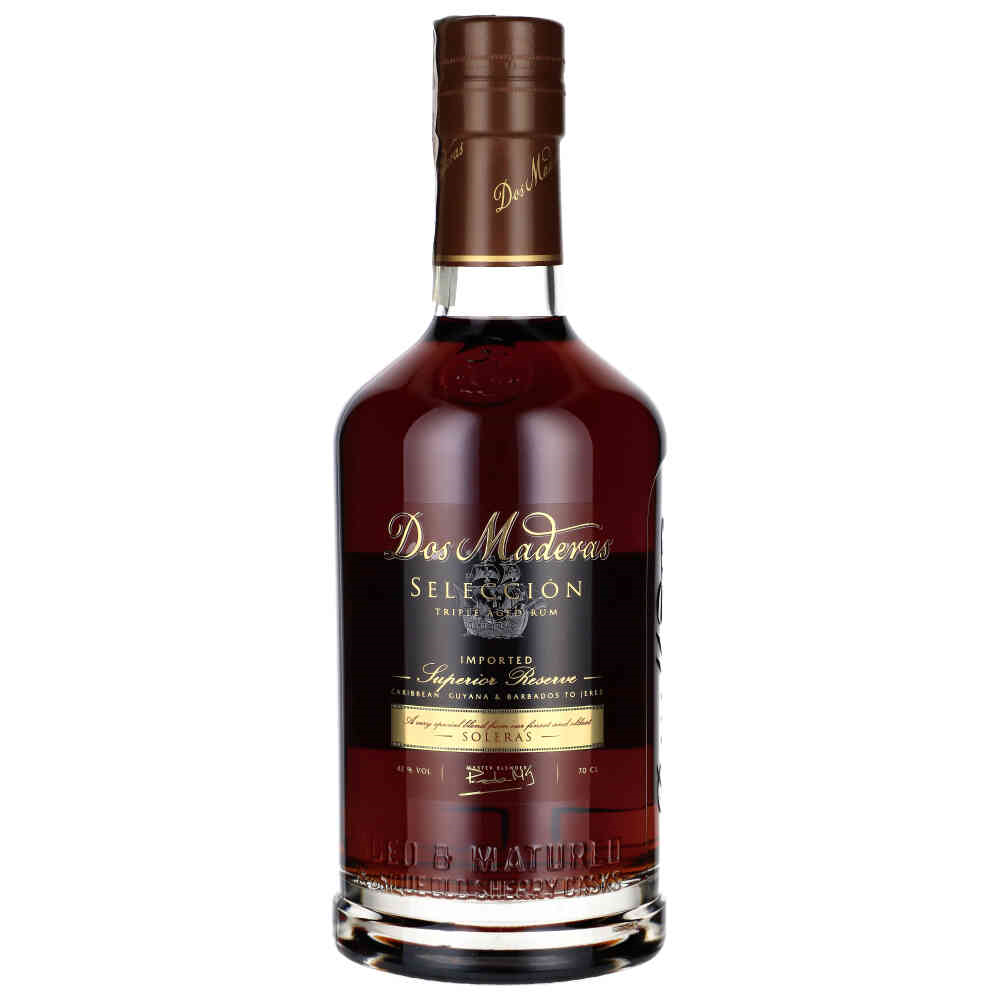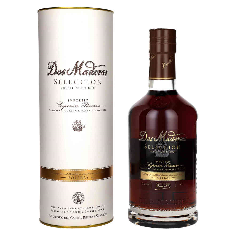 DOS MADERAS SELECCION To wyselekcjonowana kombinacja Dos Maderas PX 5 + 5 i 10-letniej mieszanki rumów z Barbadosu i Gujany. Leżakowanych w beczkach po burbonie, łączy subtelne i wyrafinowane smaki starego klasycznego rumu z intymnymi nuta-mi dębowej sherry i słodkiej Sherry Ximemez. Słodki aromat zawdzięcza Dos Maderas 5 + 5 PX, natomiast smaku nadaje 10-letni rum, który jest wrażenie zaokrąglony i wytrawny. Odnajdziemy w nim również delikatne tony białego dębu i słodycz starych beczek Pedro Ximénez. Bardzo przyjemny, długi i słodki finisz.