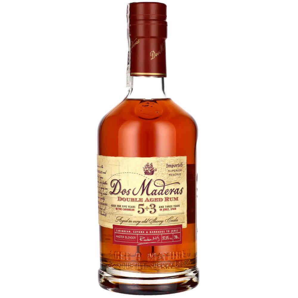 DOS MADERAS 5+3 to rum w którym proces dojrzewania podzielony został na dwa etapy sprawia, że Dos Maderas 5+3 jest wyjątkowy w skali światowej. Jego bukiet, smaki i aromaty są trudnymi do porównania z innymi rumami. W smaku wyczuwalne są nuty tostowe, wanilii oraz orzechów. W aromacie gładki i elegancki.
