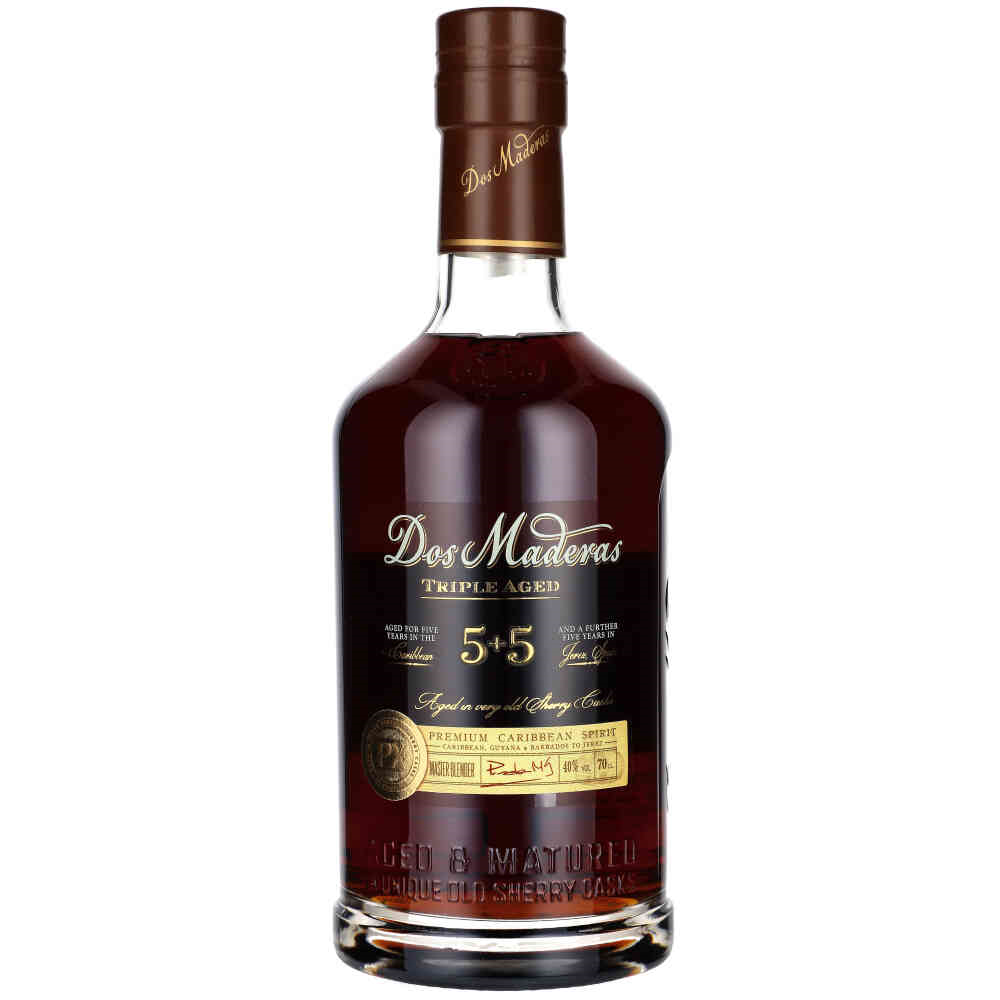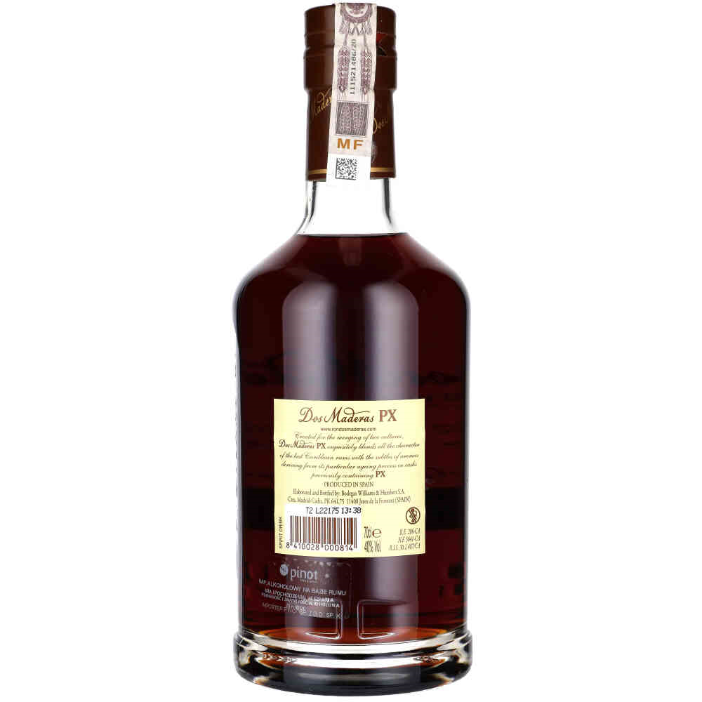 Rum Dos Maderas 5+5 - końcowy etap dojrzewania w beczkach po sherry Pedro Ximenez takich jak „Don Guido”, nadaje rumowi Dos Maderas PX bardzo ciemny, bursztynowy kolor, oraz delikatne nuty rodzynek, fig i wanilii. Ze względu na swoją wysoką jakość, najlepiej podawać go samo-dzielnie lub na kilku kostkach lodu.