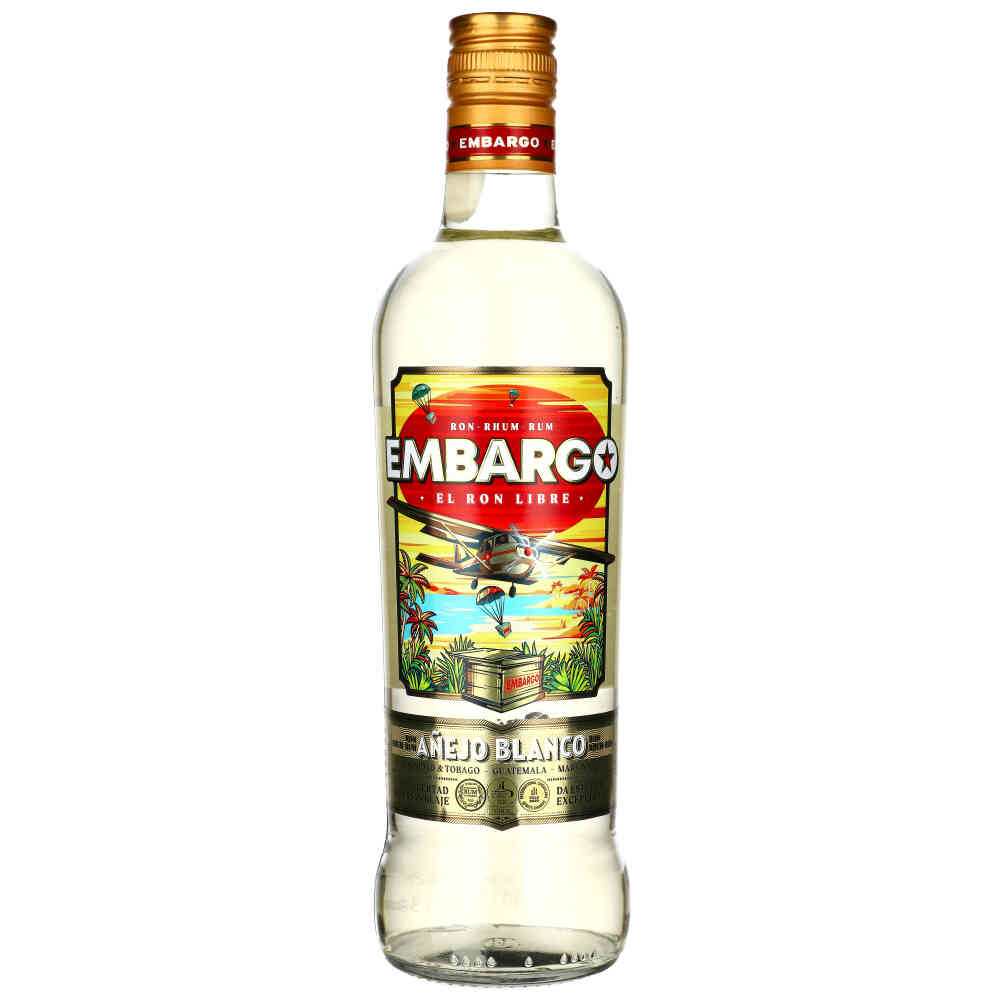 EMBARGO AÑEJO BLANCO Rum po zakończonym procesie starzenia, poddawany jest filtracji, dzięki której pozbawiany jest on większości koloru, pozostawiając jedynie bladożółty odcień, który przywołuje na myśl jego maślany, bananowy posmak. W nosie cytrusy i flambirowany banan, smak jedwabisty i zrównoważony, a zakończenie świeże i trwałe.