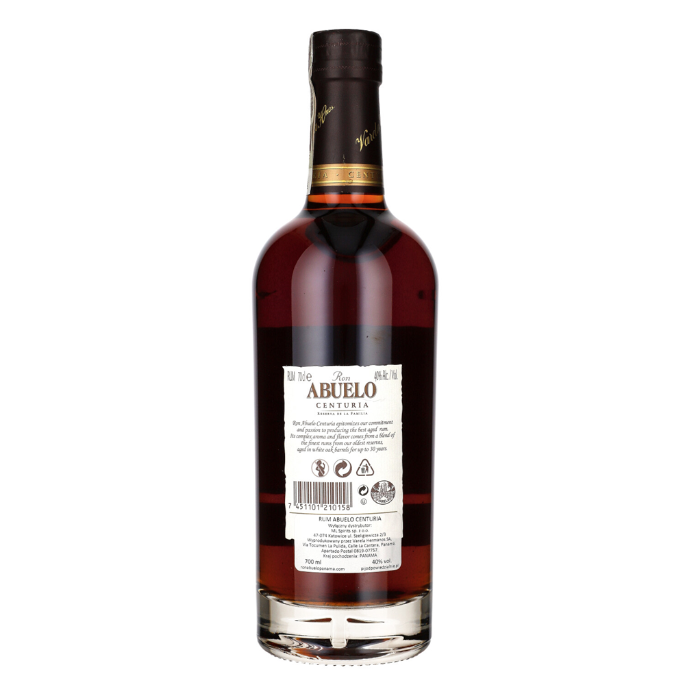 RUM ABUELO CENTURIA - limitowany panamski rum, będący ukoronowaniem ponad stuletniej tradycji rodziny Varela. Powstaje z wyselekcjonowanej trzciny cukrowej z własnych upraw i dojrzewa nawet do 30 lat w beczkach po whiskey Jack Daniels, co nadaje mu niepowtarzalny charakter.