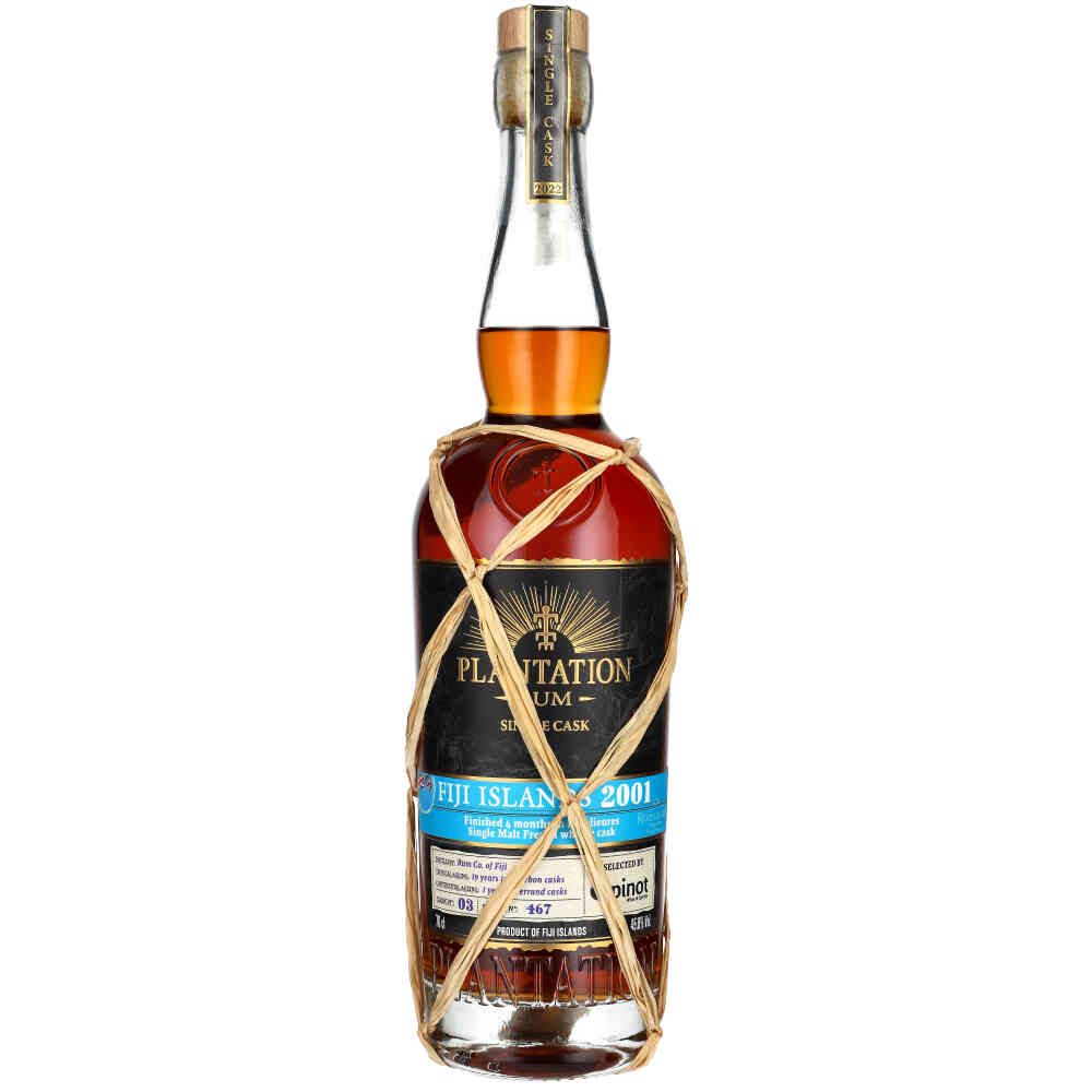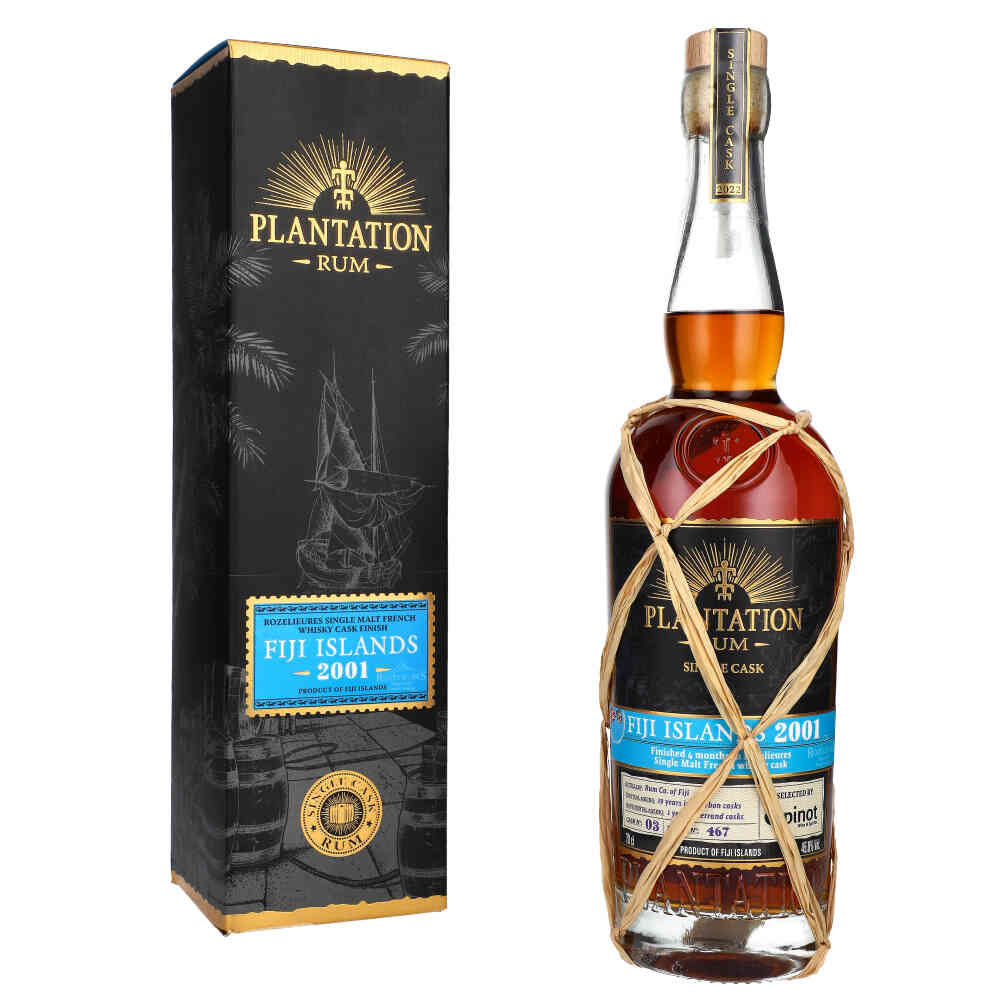 Rum Plantation SC Fiji 2001 - trunek pochodzi z Rum Company of Fiji. Dram wytwarzany jest na bazie melasy i destylowany w kombinacji kolumn i alembików miedzianych. Dojrzewa początkowo w tropikach, w tradycyjnych beczkach po bourbonie przez okres 2 do 3 lat, po czym trafia do Francji, gdzie przelewany jest do beczek po koniaku Ferrand na kolejny rok.