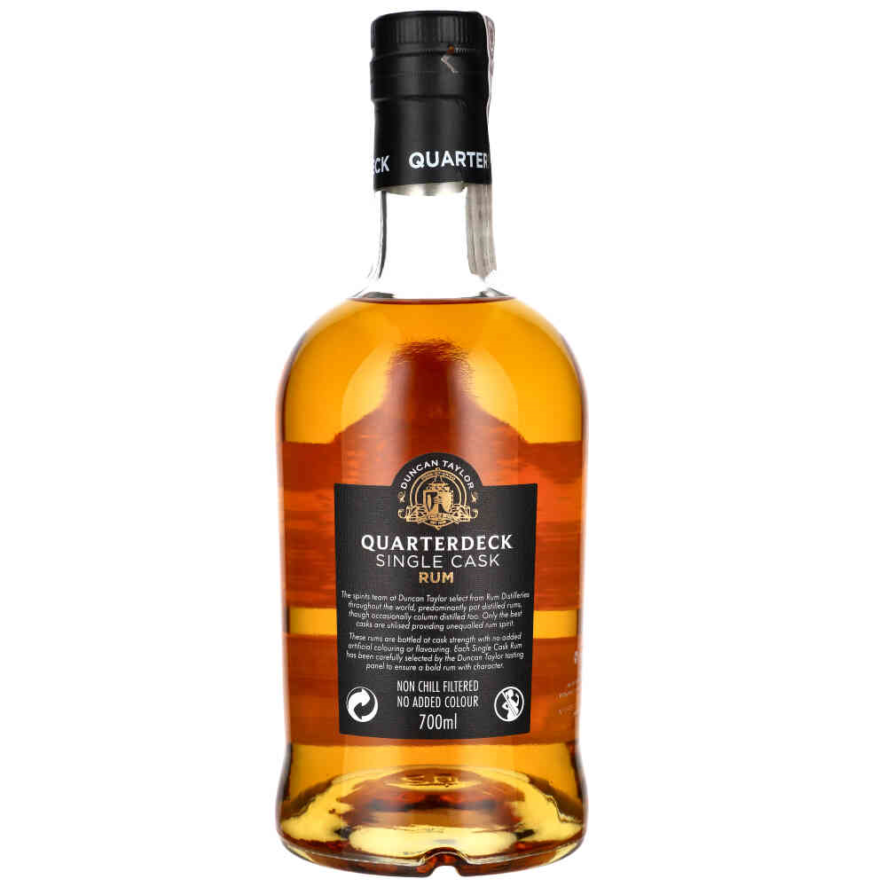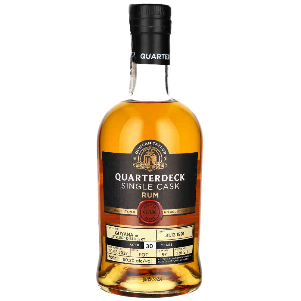 Rum Quarterdeck Guyana 1991 30Y to limitowana edycja wypuszczona przez markę Duncan Taylor, która słynie z wyboru najwyższej jakości beczek rumu pochodzących z najlepszych destylarni na świecie. Ten konkretny rum został destylowany w 1991 roku w zamkniętej już destylarni Uitvlugt w Gujanie i dojrzewał przez 30 lat przed zabutelkowaniem z mocą 50,2%. Jest to rum typu single cask (z jednej beczki), wyprodukowany w tradycyjnym stylu, który podkreśla głębię i złożoność smaków. Produkt nie był filtrowany na zimno i nie zawiera dodanych barwników, co zapewnia jego czystość i autentyczność.