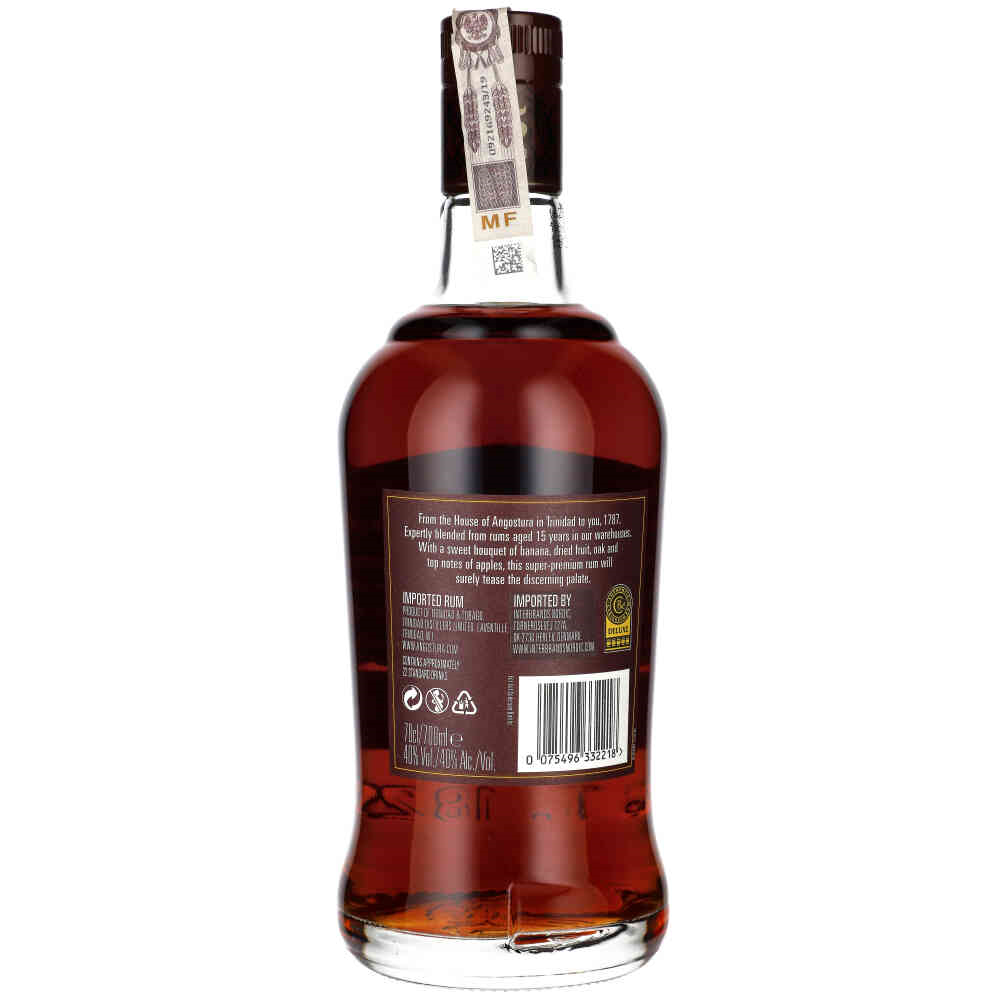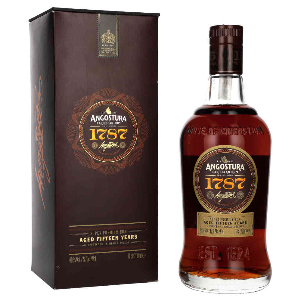 RUM ANGOSTURA 15Y 1787 - to prawdziwy klejnot w świecie rumów premium. Wyrafinowany, dojrzewający przez 15 lat w beczkach po dębie, oferuje intensywnie złożony bukiet smaków, który zachwyci nawet najbardziej wymagających koneserów. Ciemny bursztyn tego trunku kryje w sobie aromaty kremowego dębu i dojrzałych bananów, które kuszą swoją słodyczą już od pierwszego wdechu. Na podniebieniu rozkwitają nuty deseru karmelowego i suszonych śliwek, tworząc harmonijną kompozycję o niezwykłej głębi. Długi, otulający finisz pełen aksamitnej słodyczy to kropka nad "i" w tej mistrzowskiej kreacji.