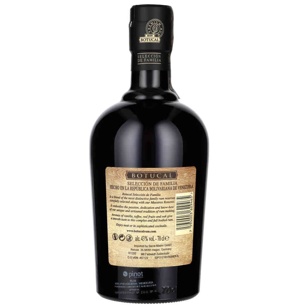 Dzięki swojej gładkiej konsystencji i aromatycznej złożoności, Rum Botucal Seleccion de Familia z pewnością przypadnie do gustu zarówno nowicjuszom, jak i doświadczonym smakoszom rumu. To doskonały wybór do degustacji, który zaspokoi Twoje pragnienie jakości i przyjemności.
