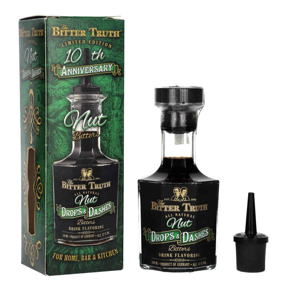 DROPS & DASHES NUT BITTERS Wyróżnia się swoim ciemnobrązowym kolorem oraz nutami orzechowymi w połączeniu ze śliwkami, rodzynkami oraz prażonymi orzechami laskowymi.
