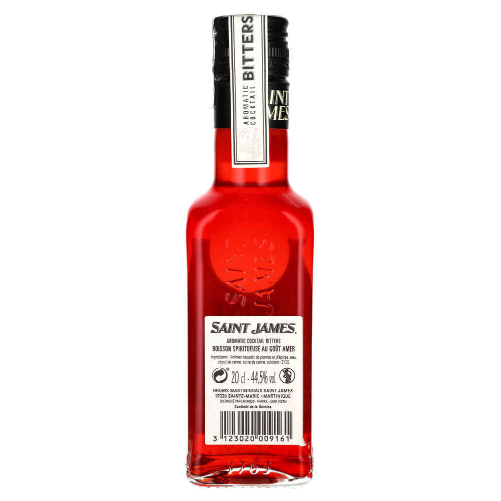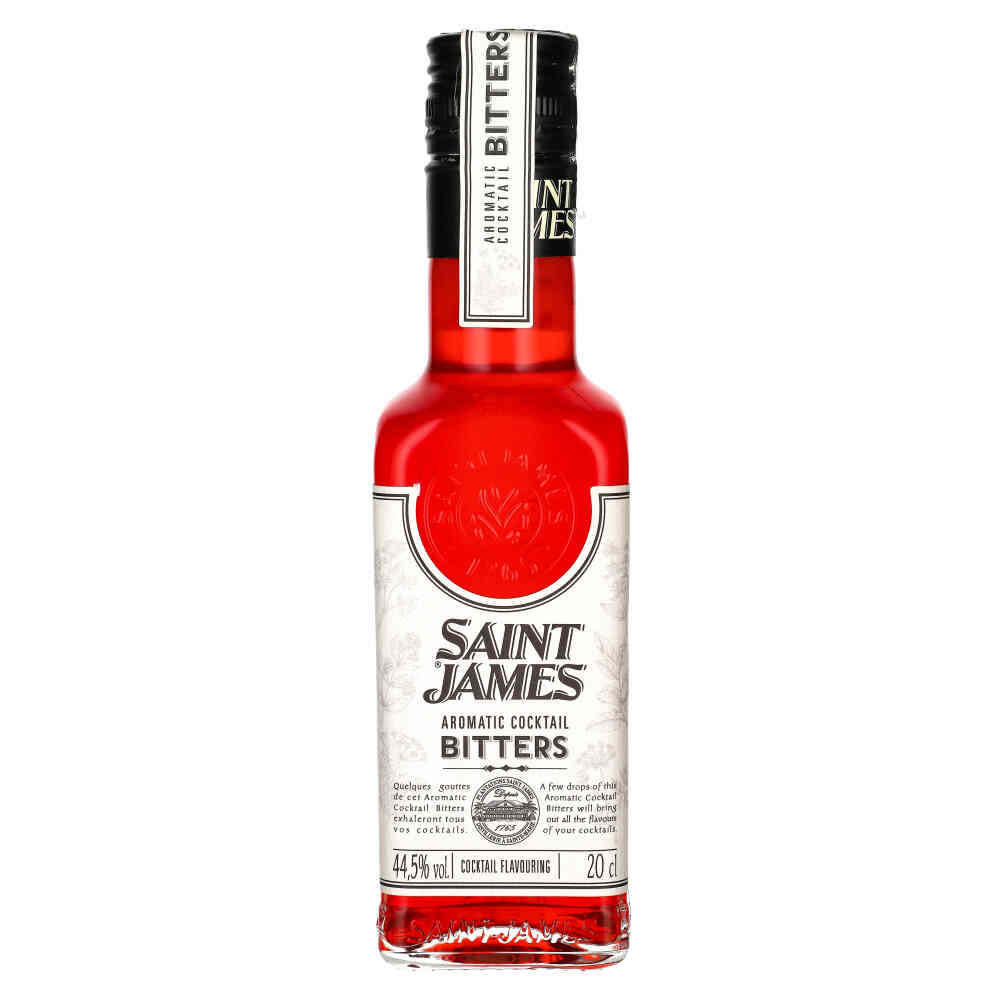 Bitters Saint James Aromatic Cocktail to nowoczesna interpretacja klasycznych receptur, która łączy tradycyjne zioła i przyprawy z rumem agricole. Oferujący moc 44,5% alkoholu.