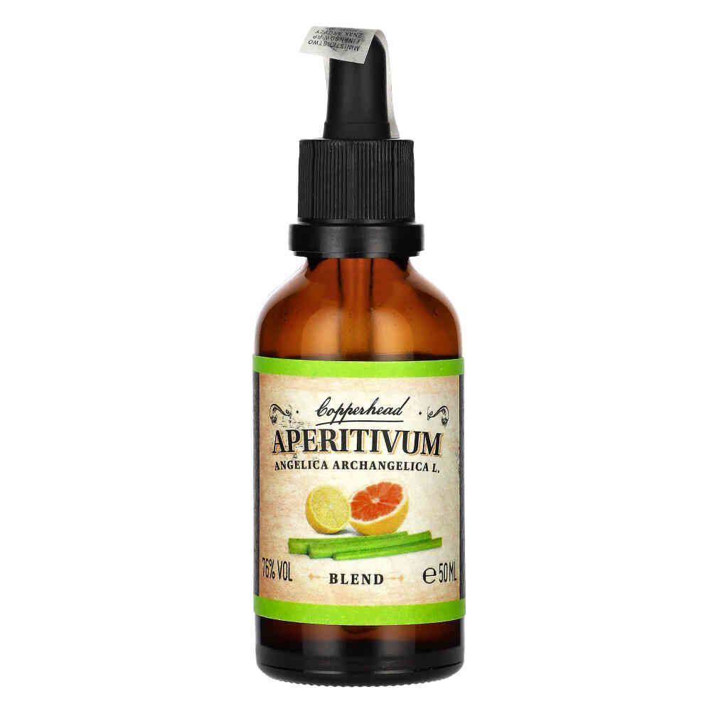 MINIATURKA COPPERHEAD APERITIVUM BLEND to wyjątkowy, wysoko procentowy likier o gorzkawym charakterze, idealny do wzbogacania koktajli, szczególnie na bazie ginu. Produkowany w Belgii, zawiera mieszankę botanicznych składników, takich jak grejpfrut i korzeń arcydzięgla, co nadaje mu wyrazisty, lekko gorzki smak, który doskonale stymuluje apetyt. Dzięki wysokiej zawartości alkoholu (76%), stosuje się go w małych ilościach, głównie jako dodatek do koktajli lub aperitif, by wzbogacić ich aromat i smak.
