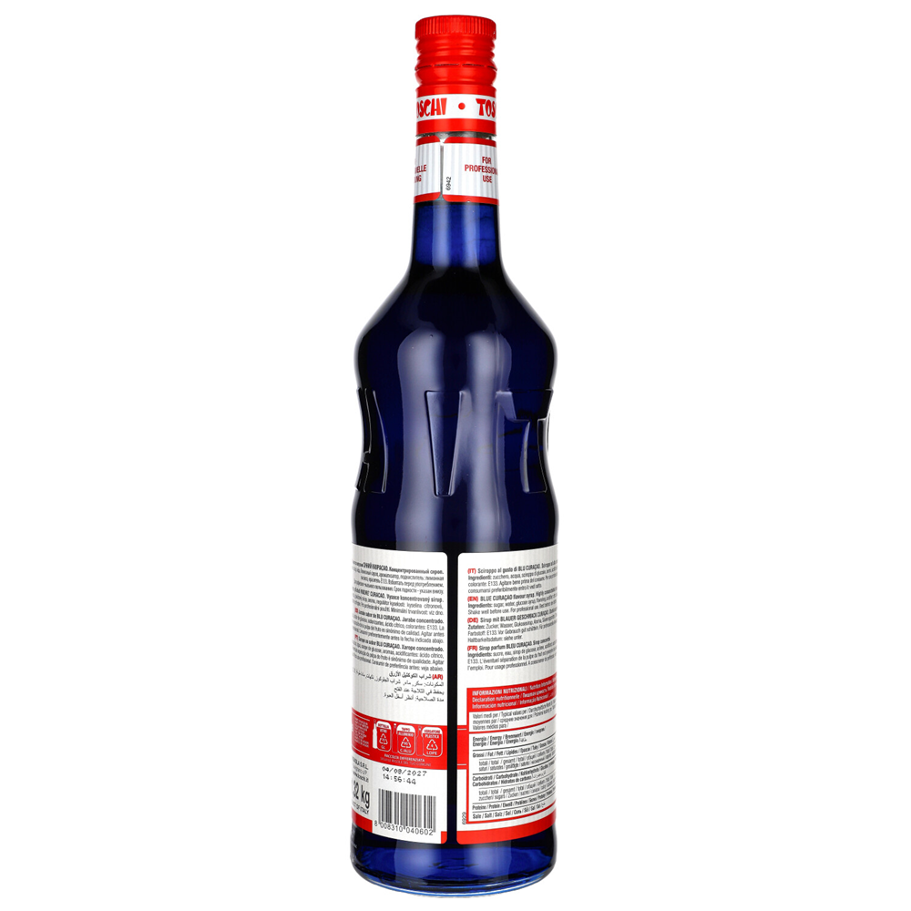 Toschi Syrop Blue Curacao to wysokiej jakości syrop o intensywnym, niebieskim kolorze, inspirowany klasycznym likierem Curacao. Ten syrop jest doskonałym dodatkiem do różnych napojów, w tym koktajli i deserów, a jego owocowy smak może wzbogacić zarówno klasyczne, jak i kreatywne przepisy barowe.